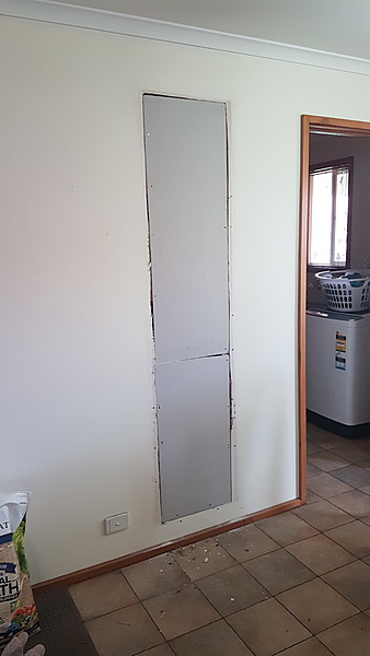 Currently have 2 holes through plaster walls from a gas heater (205×46cm) and an old air conditioner (52x55cm). Looking to get these fixed ASAP. Price is set for you to include all materials.